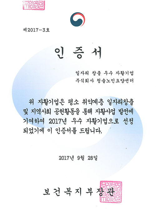 서비스는 좋은 근로조건에서 나온다고 생각하는 청솔돌봄 사회적협동조합은 모든 종사자가 성심껏 일할 수 있는 근무환경을 만들기 위해 노력합니다. 과도한 영리추구와 편법 운영의 피해자는 결국 서비스 이용자들이기에 투명한 경영과 서비스 질로 인정받는 것이 청솔돌봄 사회적협동조합의 바람입니다.